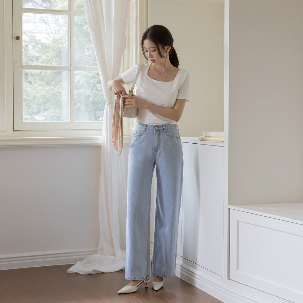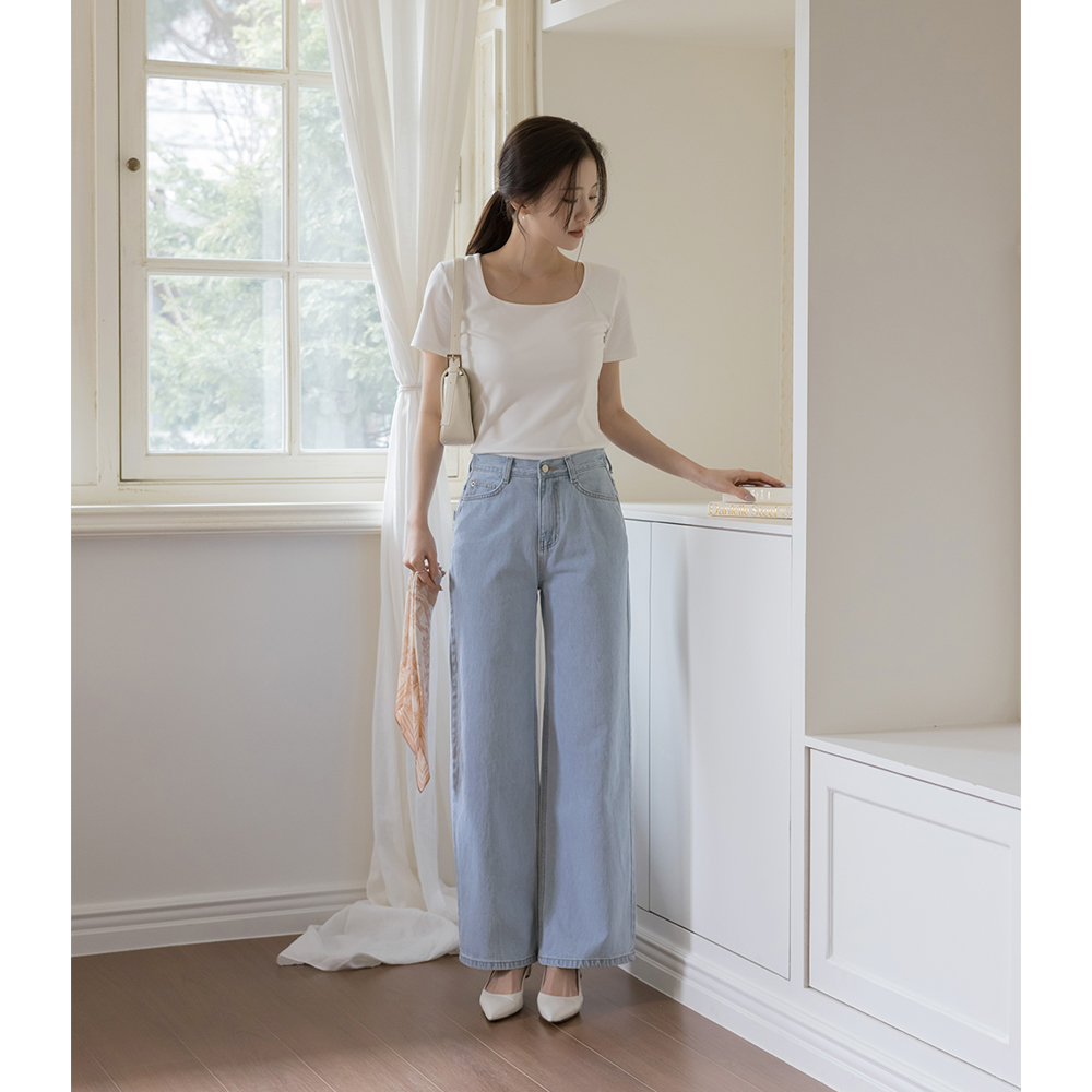 [O:neul] Soft Modal slender Square Neck Short-sleeve T-shirt
