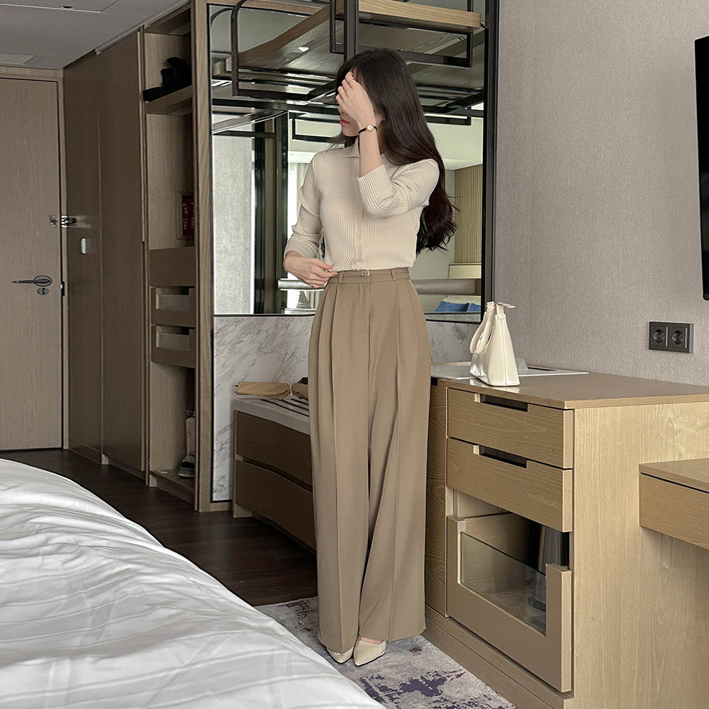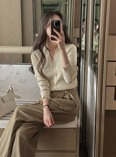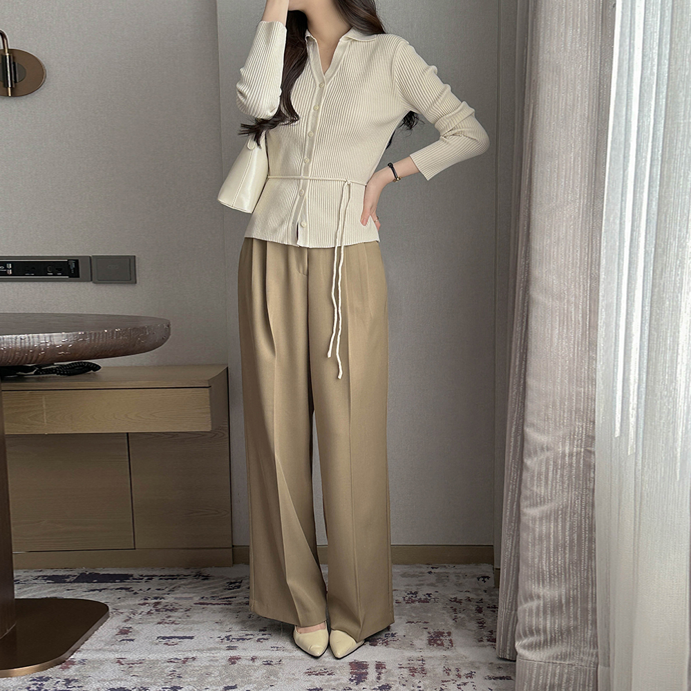 Collar Cutting-Neck Corduroy Cardigan Knit(+Belt)
