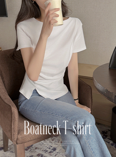 Boat Neck Shirring Pretty fit Short-sleeve T-shirt