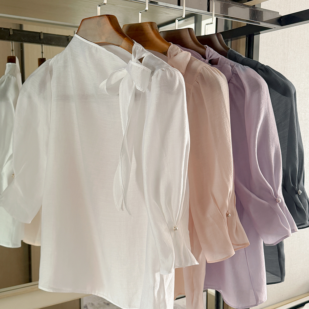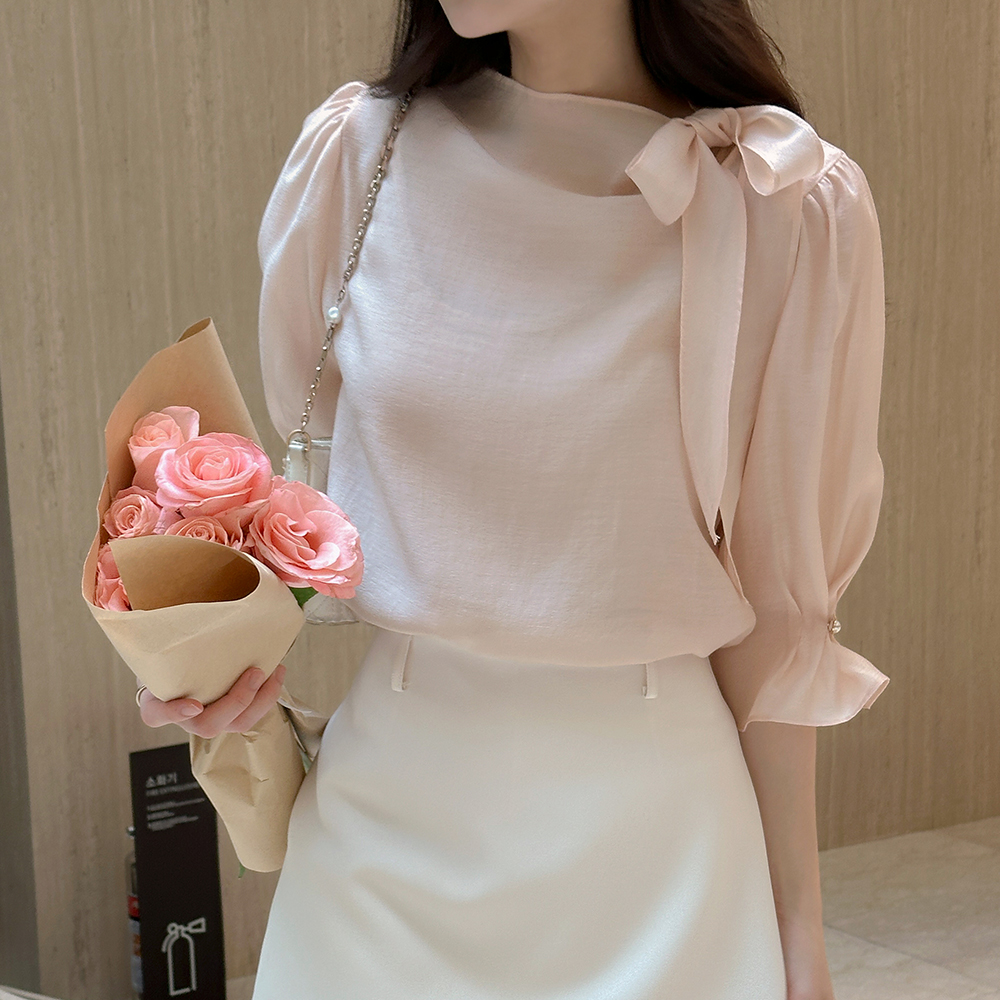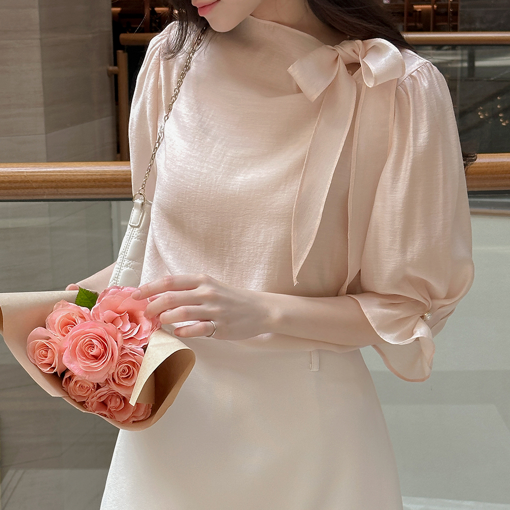 ๋กœ๋งจ์Šค Ribbon neckline Capri Tencel Blouse