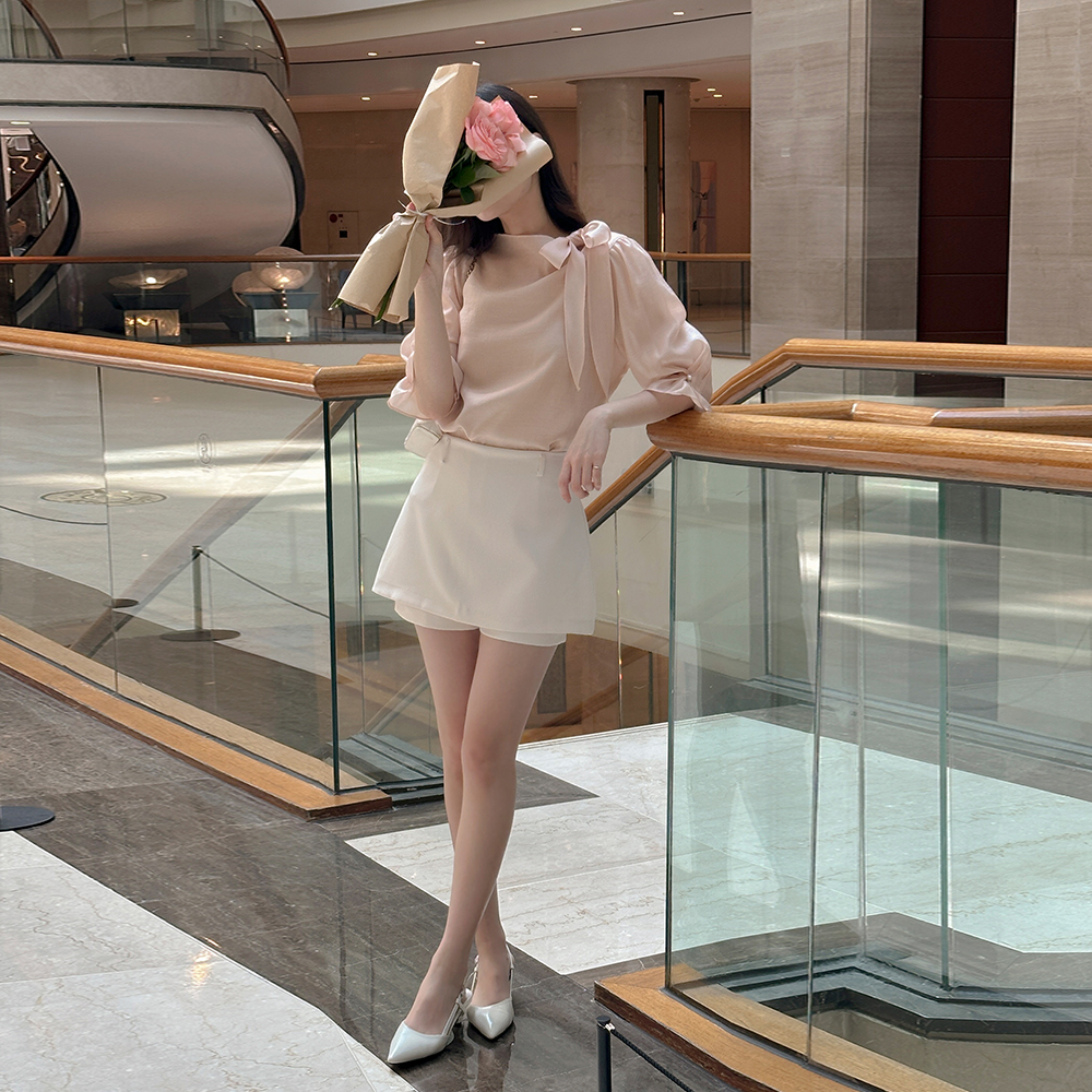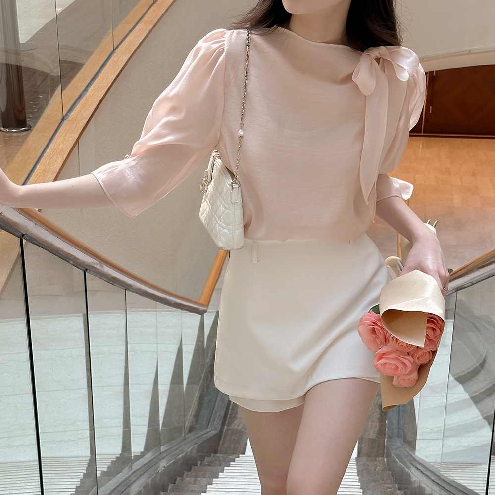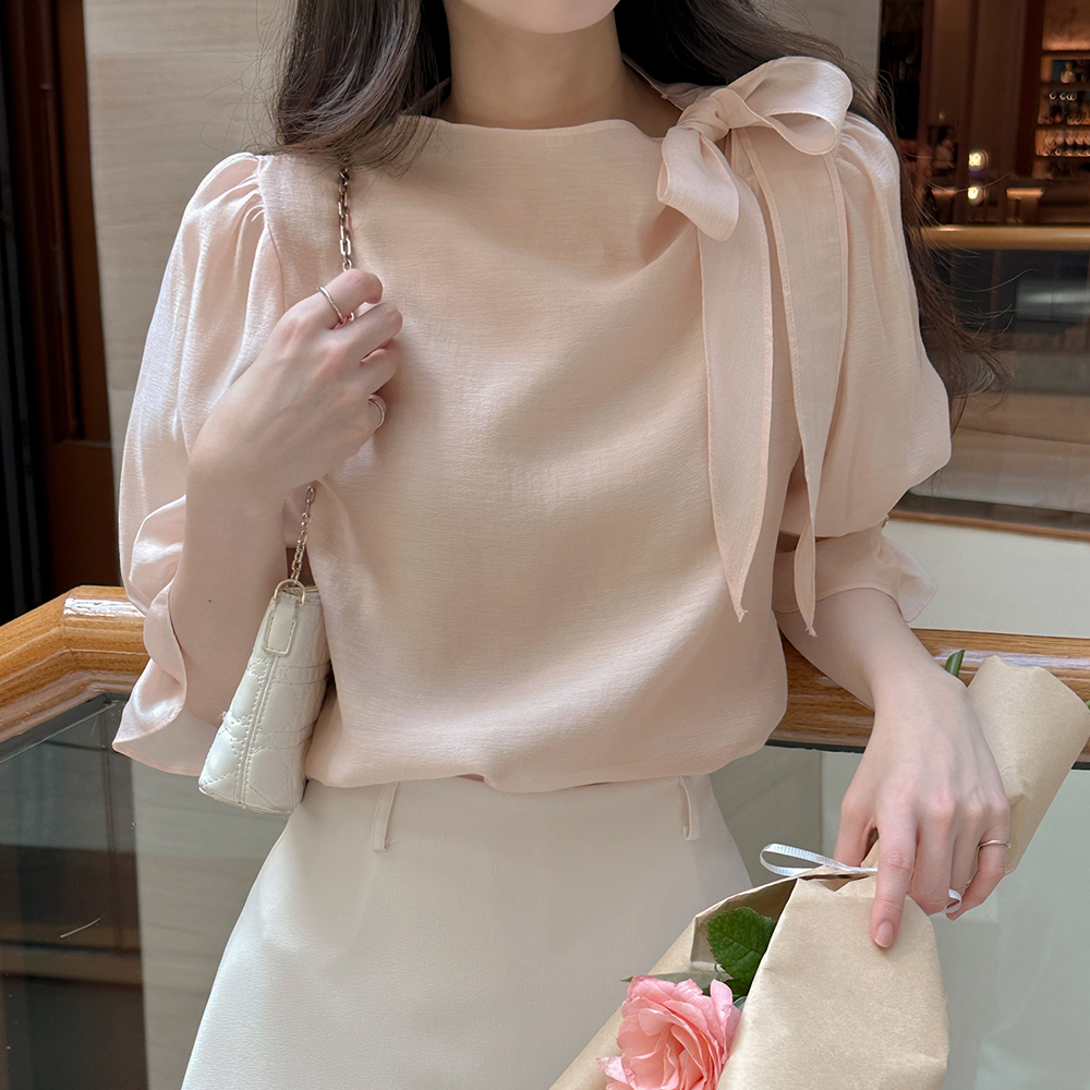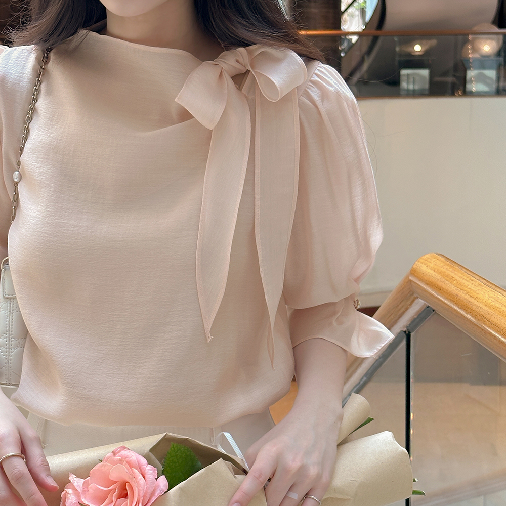 ๋กœ๋งจ์Šค Ribbon neckline Capri Tencel Blouse