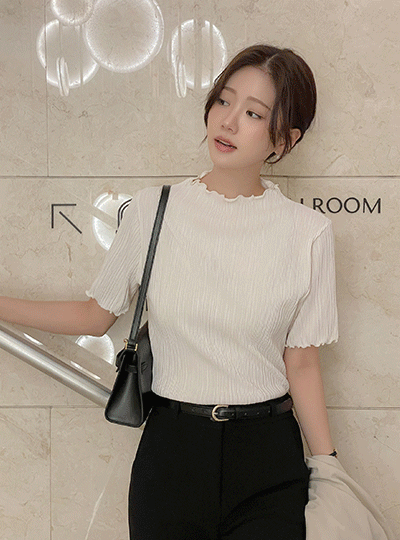 날라리 Pleats Wrinkle Short-sleeve T-shirt