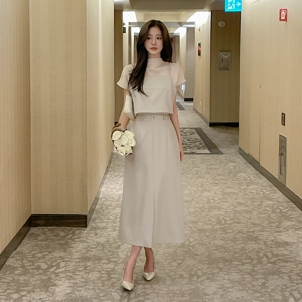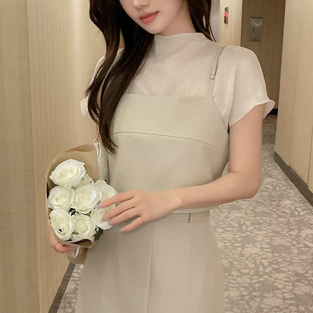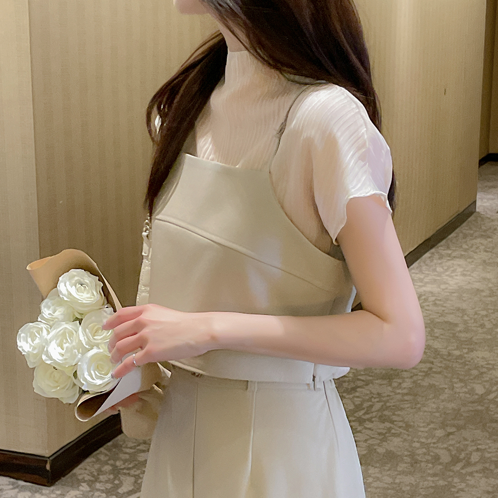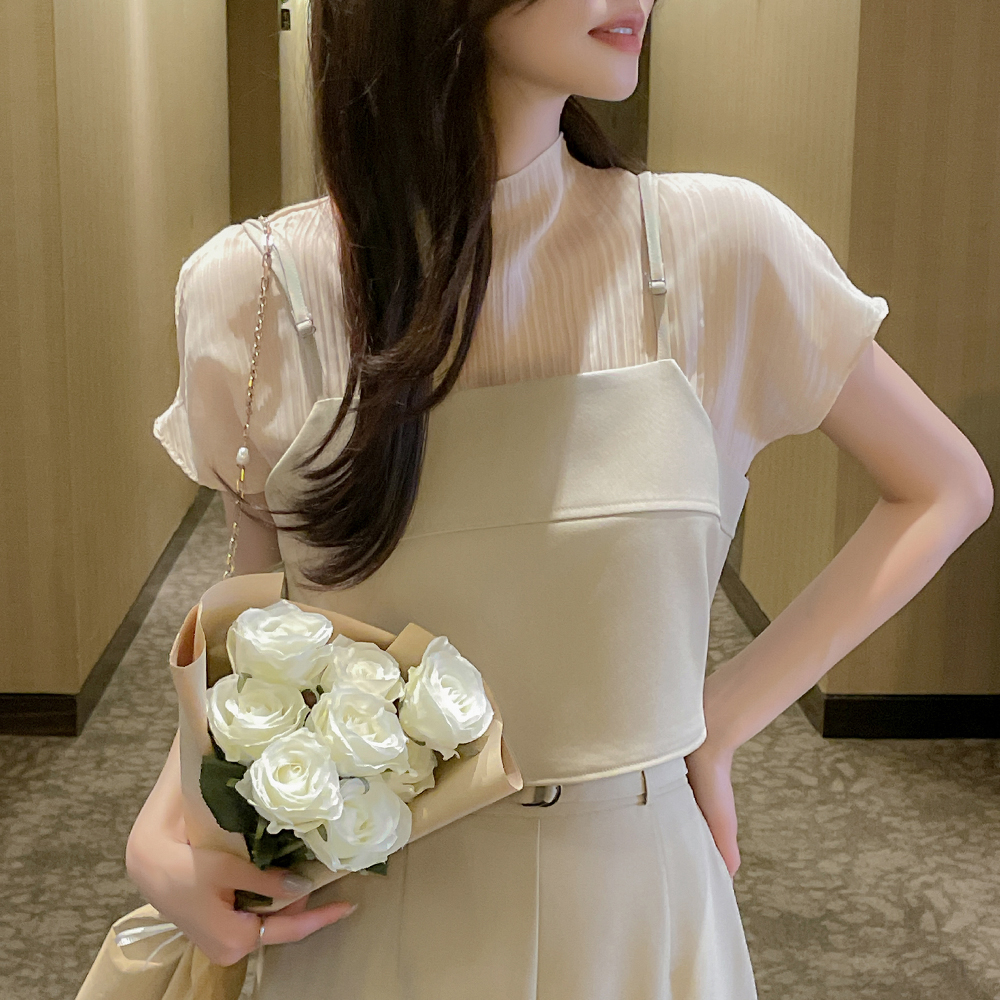 Romantic See-through Half-Highneck Cap-Sleeves Blouse