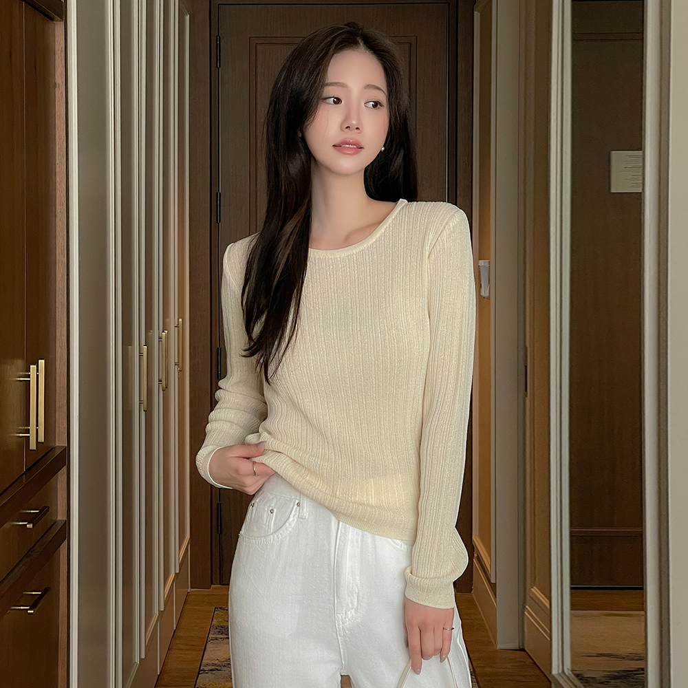 Peeling NO! Summer See-through Raund neck Pleats Knit