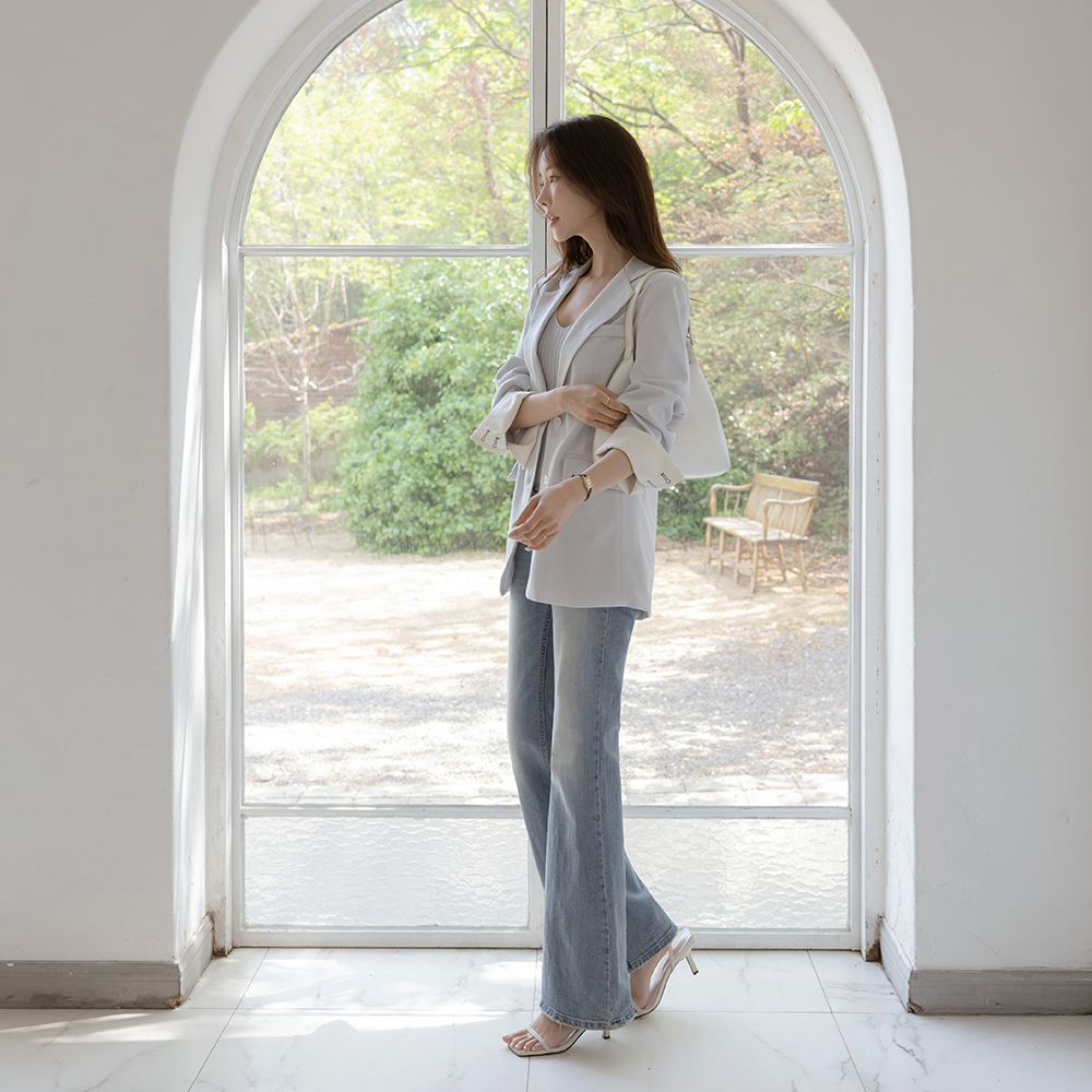 Hems Cutting Washing Boot-Cut Span Denim Pants